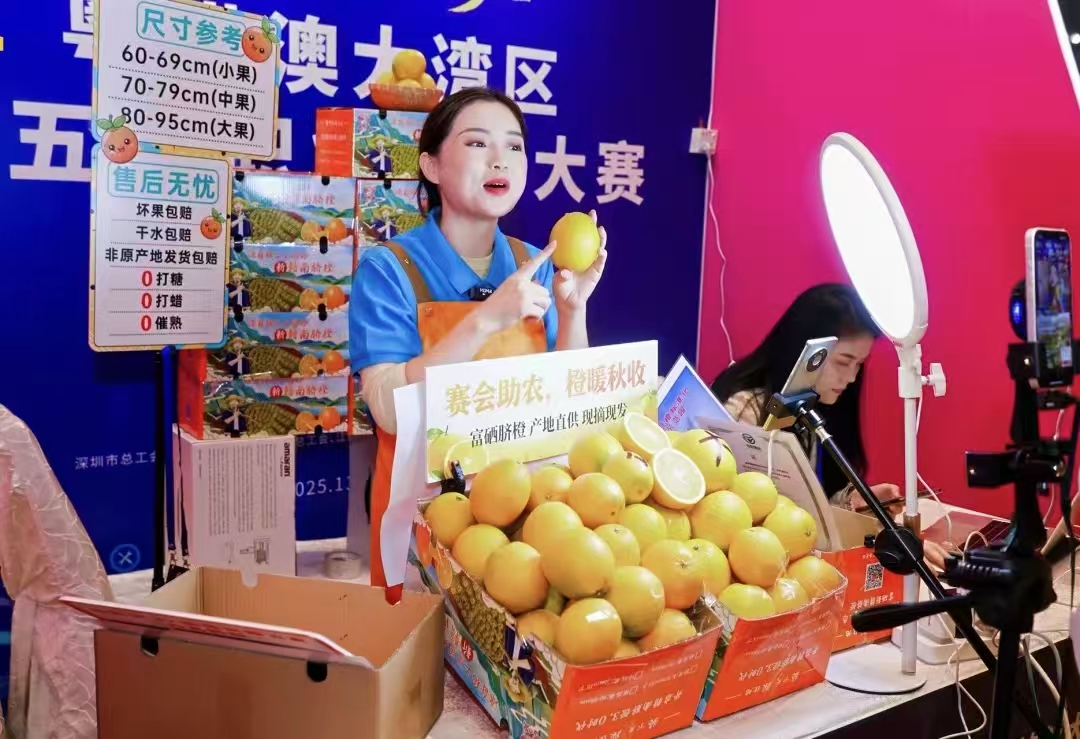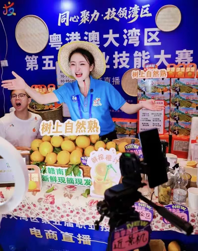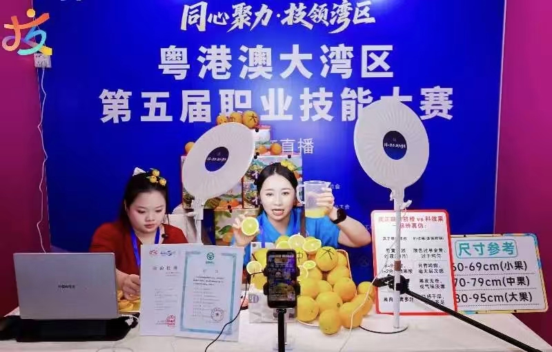 11月4日,“同心聚力·技领湾区”粤港澳大湾区第五届职业技能大赛电商直播竞赛在广东珠海举办。比赛现场橙香四溢、“赣”味十足,深圳市代表队等多支参赛队伍将赣南脐橙作为重要带货推介选品,短短2个小时直播便实现带货赣南脐橙超4万斤,总销售额近15万元。