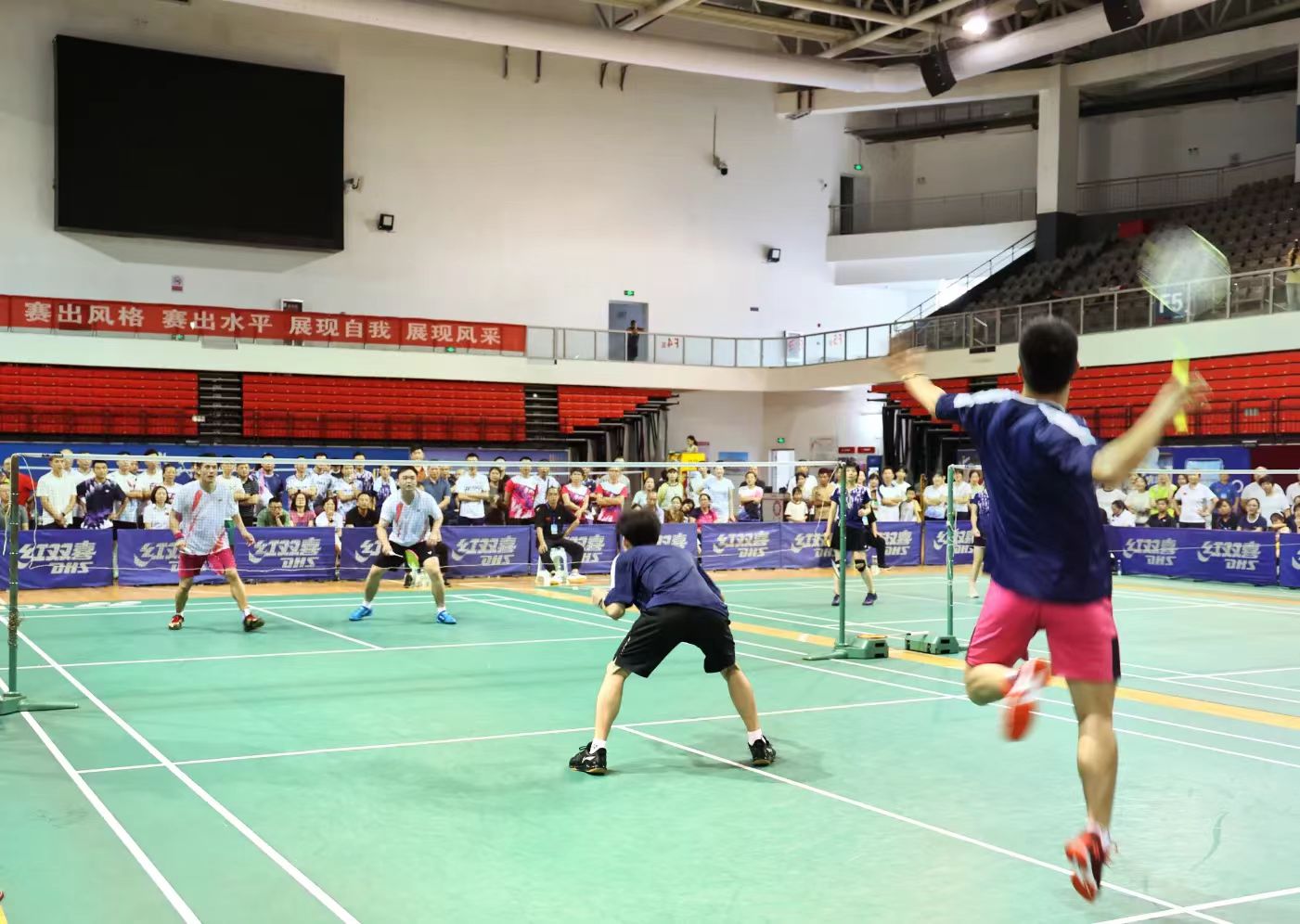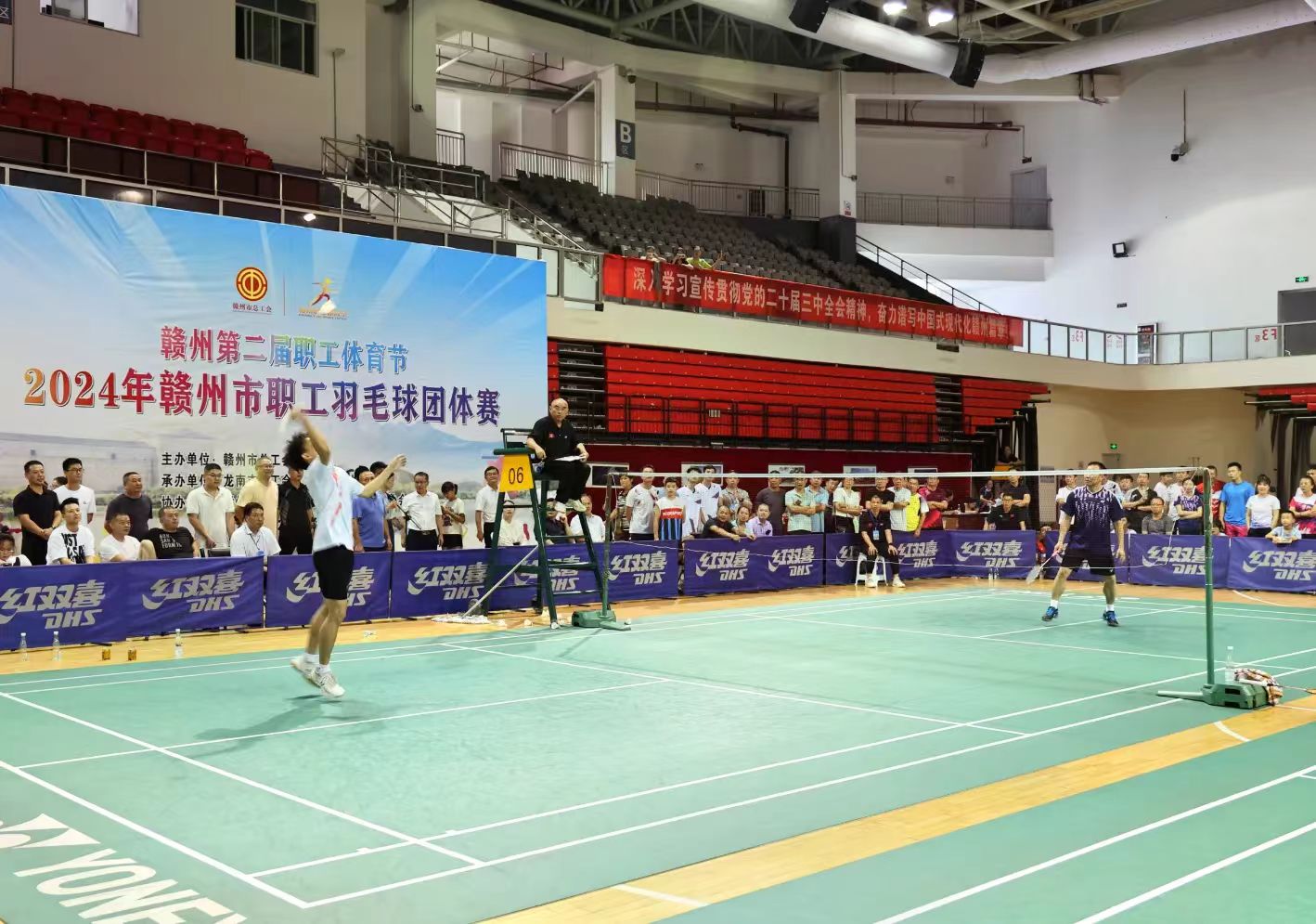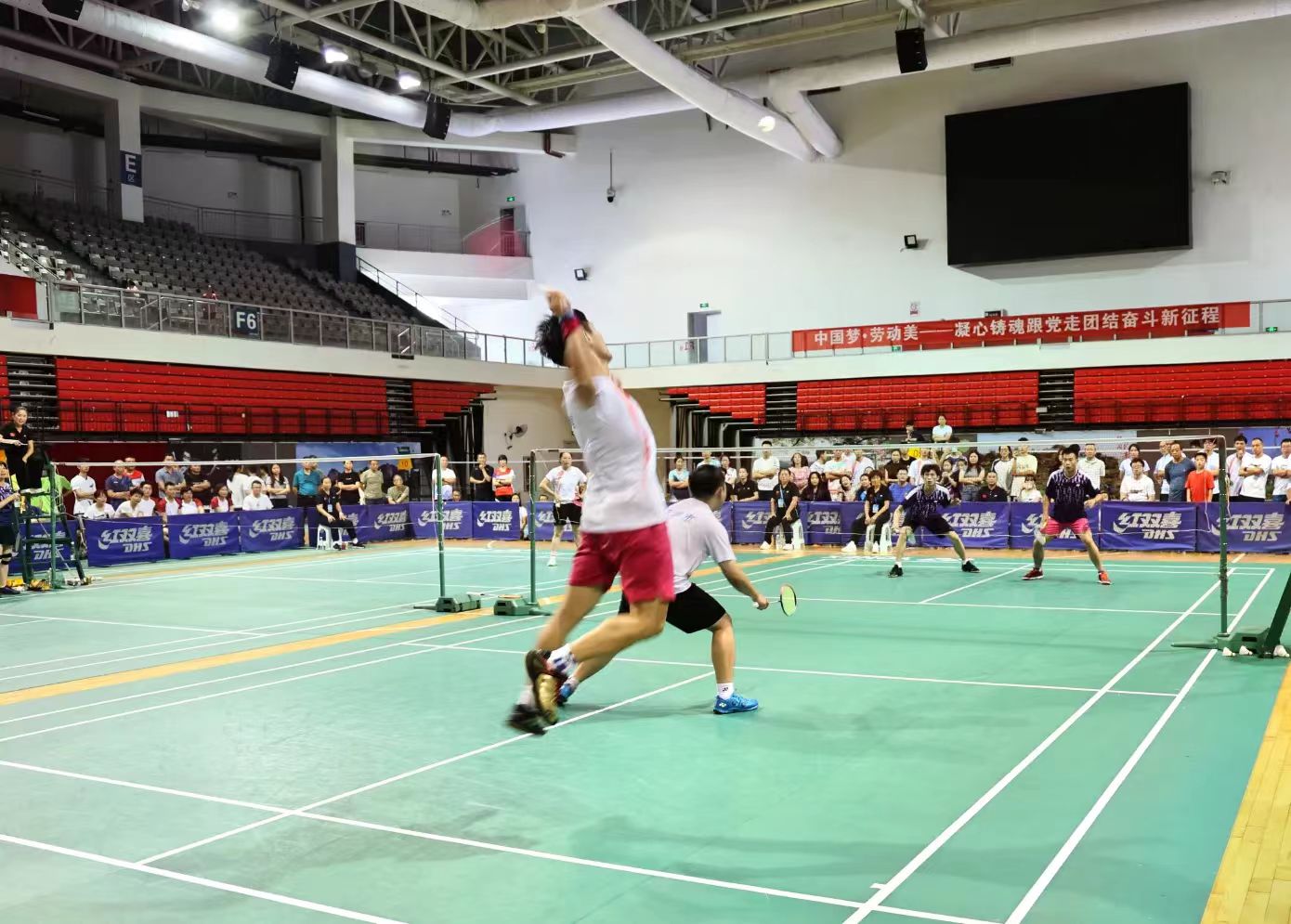 赛场上,参赛队员热情澎湃、斗志昂扬,发扬顽强拼搏、奋勇争先的精神,发球、吊球、扣杀、防守……队员配合默契、动作连贯,打出了一场场精彩的比赛,展现出良好的竞技水平和运动风采。球馆内掌声、欢呼声此起彼伏,气氛热烈。