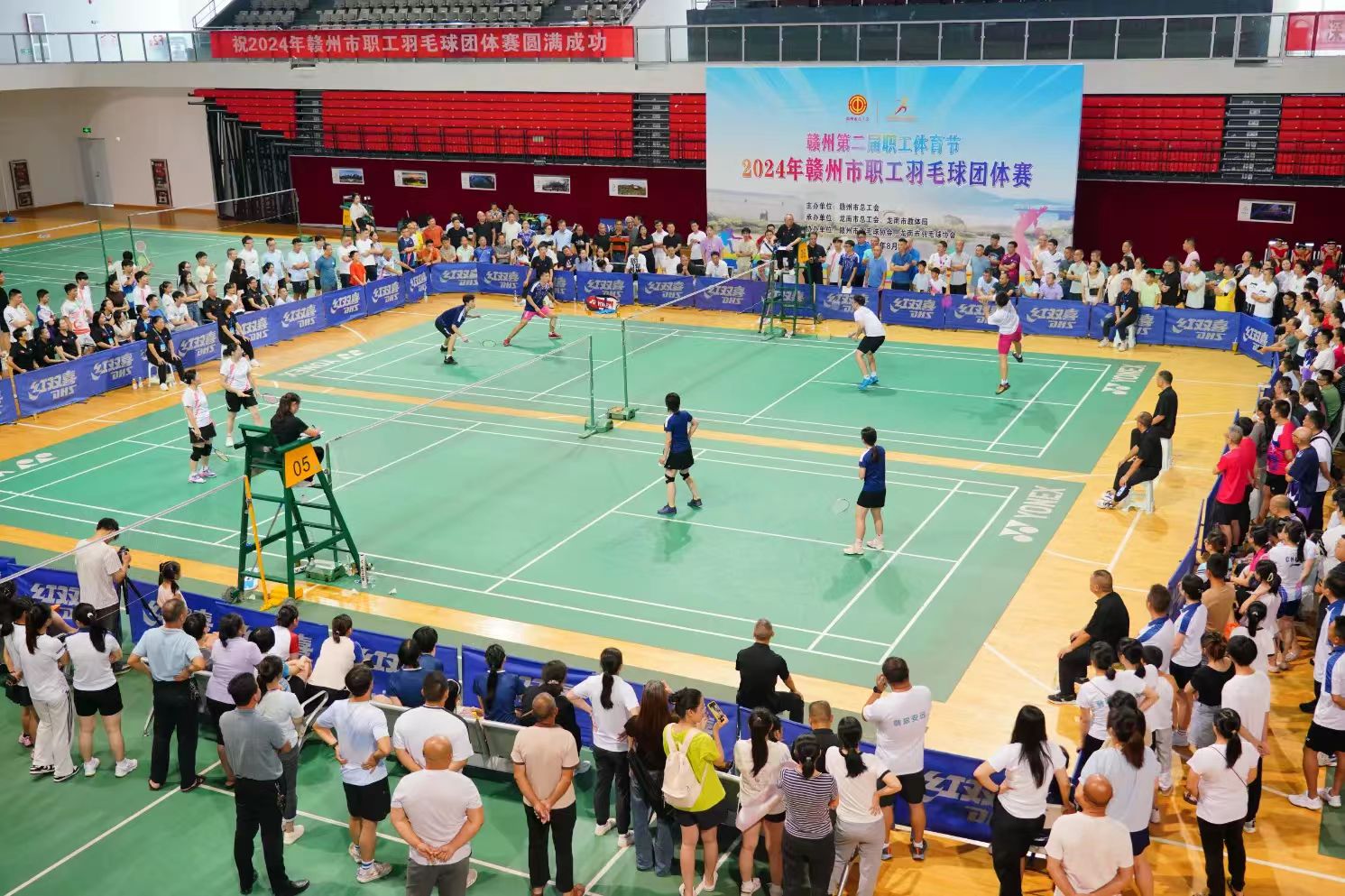 此次全市职工羽毛球团体赛是赣州第二届职工体育节系列活动之一,由赣州市总工会主办,龙南市总工会、龙南市教体局承办,赣州市羽毛球协会、龙南市羽毛球协会协办,共吸引了来自全市各地各单位的28支代表队310余名职工参赛。比赛分县(市、区)组和市直(驻市)组两个组别,由混双、男双、女双、男单、女单5个项目组成,采用“小组赛 淘汰赛”的赛制,分别决出各组别前8名。
