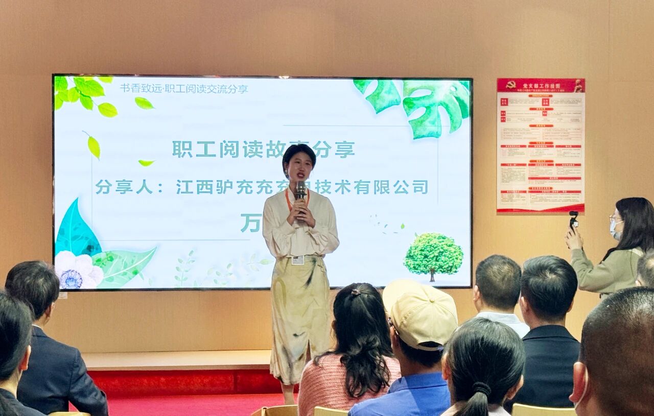 在职工阅读交流分享现场,驴充充公司职工代表登台讲述与书为伴、以学促进的阅读故事与成长历程,真挚分享打动听众。全民阅读推广人交流阅读心得,传授实用阅读方法与技巧,为职工打开高效阅读、深度阅读的一扇窗口。