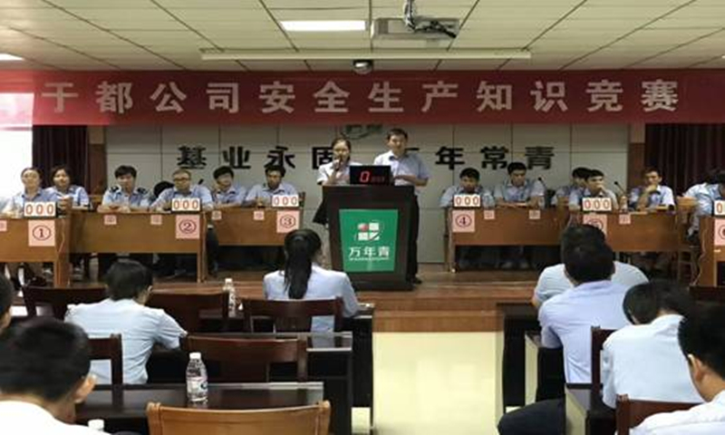 为进一步加强安全生产宣传教育工作,推动企业落实安全生产主体责任,坚决防范特重大事故和遏制较大以上事故发生,通过开展贴近实际、贴近职工的“安全生产月”宣传教育活动,增强员工安全意识,确保公司安全生产工作持续稳定, 6月27日晚上,于都公司在二楼大会议厅举行安全生产知识竞赛,于都公司副总经理孙林到场指导,公司员工共80余人参加了此次活动。本次竞赛活动派有机关代表队、生产品质部代表队、技术部代表队、原料车间代表队、熟料车间代表队、水泥车间代表队等6支代表队登台参加比赛。